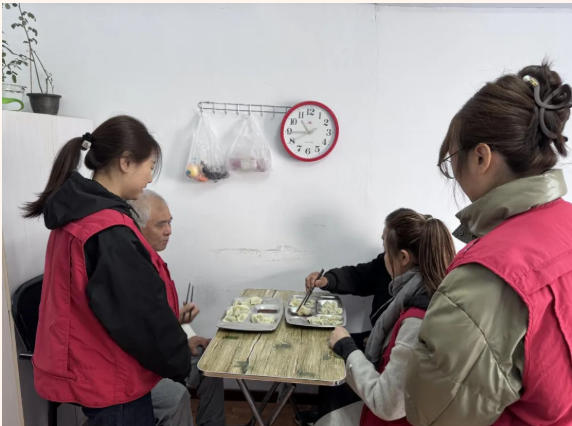 活动尾声,热气腾腾的饺子出锅上桌,志愿者将暖心暖胃的饺子递到老人手中,敬老院里处处洋溢着温馨祥和的氛围。