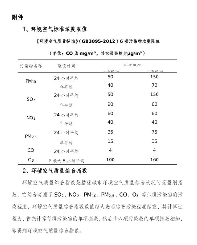 CO浓度范围为0.3~1.5mg/m³,95百分位平均浓度为1.0mg/m³,与上年同期的0.8mg/m³相比上升了0.2mg/m³。