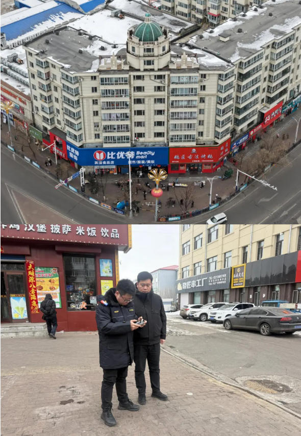 此次排查聚焦辖区南北红旗路、光宇路、南山路等14条主次干道,运用无人机高空巡查与人工地面排查相结合的方式,重点对道路两侧70栋楼外立面、屋檐、阳台等易结冰坠冰部位进行拉网式排查。