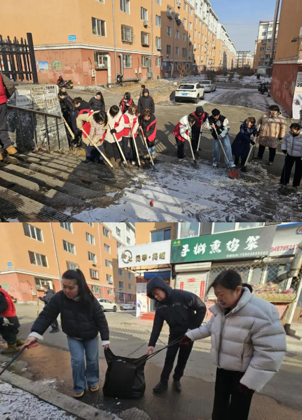 在做好冰面清理的同时,志愿者还对道路两侧的可见垃圾进行捡拾清理,对散落的纸屑、塑料袋等杂物进行集中收集。经过集中整治,辖区环境面貌焕然一新,居民出行更加安全顺畅。