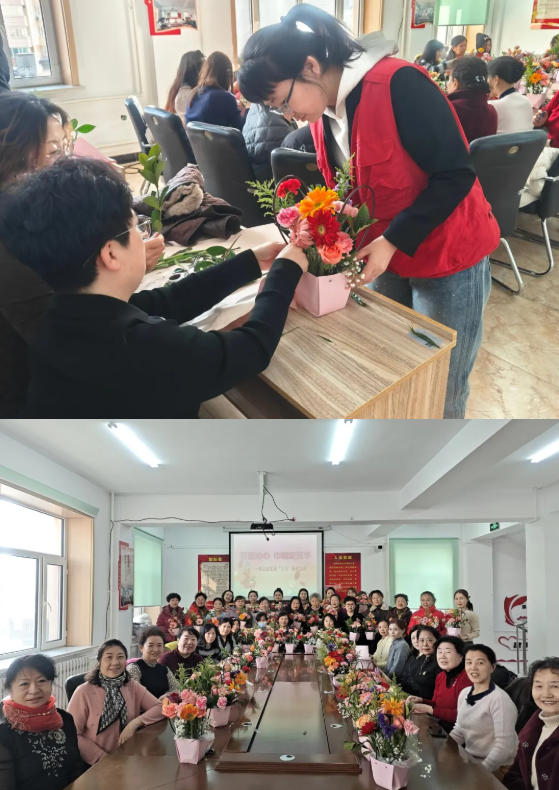 3月6日,大陆社区组织辖区女性党员及其家属开展“花漾三八节,党员展风采”主题插花活动。