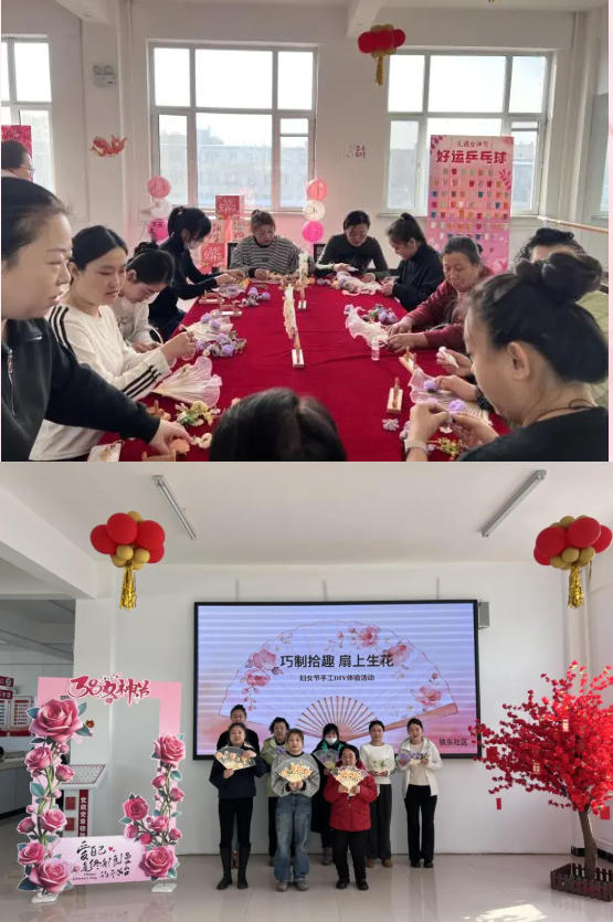 为庆祝三八国际妇女节,铁东社区开展“巧制拾趣,扇上生花”手工DIY体验活动。