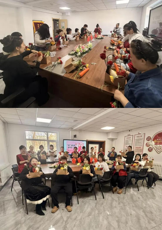 活动现场,社区向广大女同胞致以节日祝福和诚挚问候,感谢大家在家庭生活、社区建设中的辛勤付出与担当奉献。在创作环节,精心搭配花艺,制作出独具特色的插花作品。大家相互交流心得、展示作品、合影留念,在欢声笑语中增进邻里情谊。