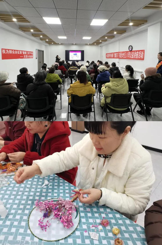活动现场,围绕女性日常保健、常见病预防、科学养生等内容进行健康知识讲座,普及健康生活理念。在塑料袋印花手工制作环节暖意十足,大家围坐在一起构思印花、点缀修饰,在相互交流与指导中,用塑料袋印出色彩鲜活、寓意美好的手工印花作品。在轻松愉悦的氛围里,大家沉浸式感受手工创作乐趣,共度温馨美好的时光。