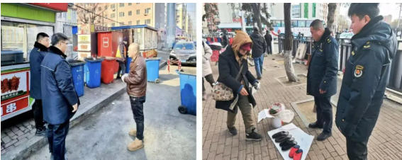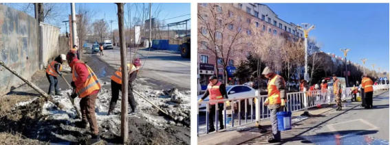 行动中,区城管局牵头,联合区市容和环卫园林中心、区住房改善服务中心及各街道,聚焦主次干道、背街小巷等关键区域开展综合整治。同步督促施工单位规范建筑垃圾堆放、及时清运处置,累计清理建筑垃圾堆积点位12 处,清运处置建筑垃圾8吨。人机协同铲除奋斗路等路段残留结冰,同步对主次干道隔离带进行全面冲洗擦拭。重点针对名苑三期、富力路桥下及绿化带等隐蔽角落全域排查,累计出动580余人次,清理白色垃圾4吨。集中攻坚南山商业街、公交站台等点位,清理小广告300余张。同时积极引导商户做好垃圾分类、门前整洁工作,推动形成长效管理机制。
